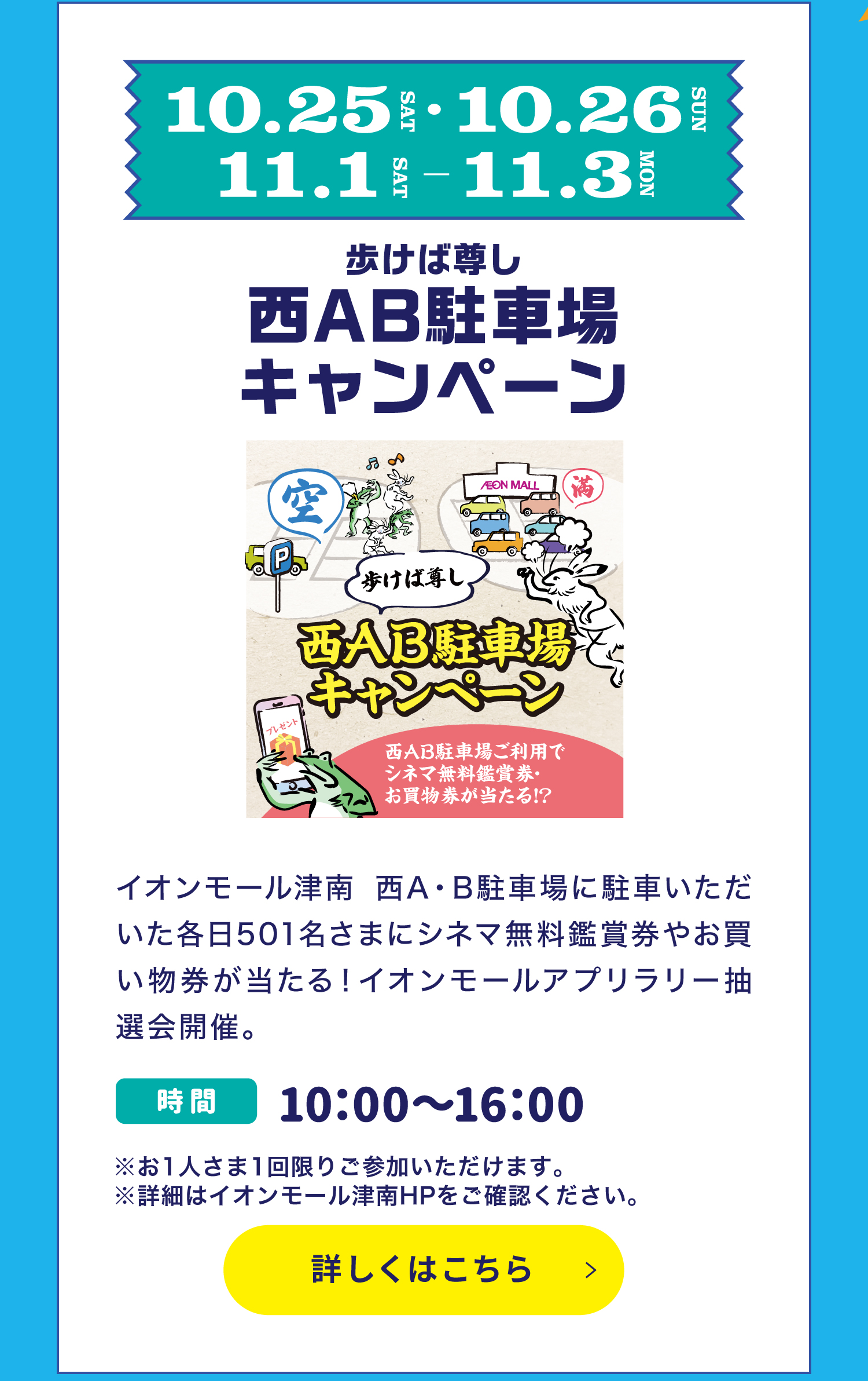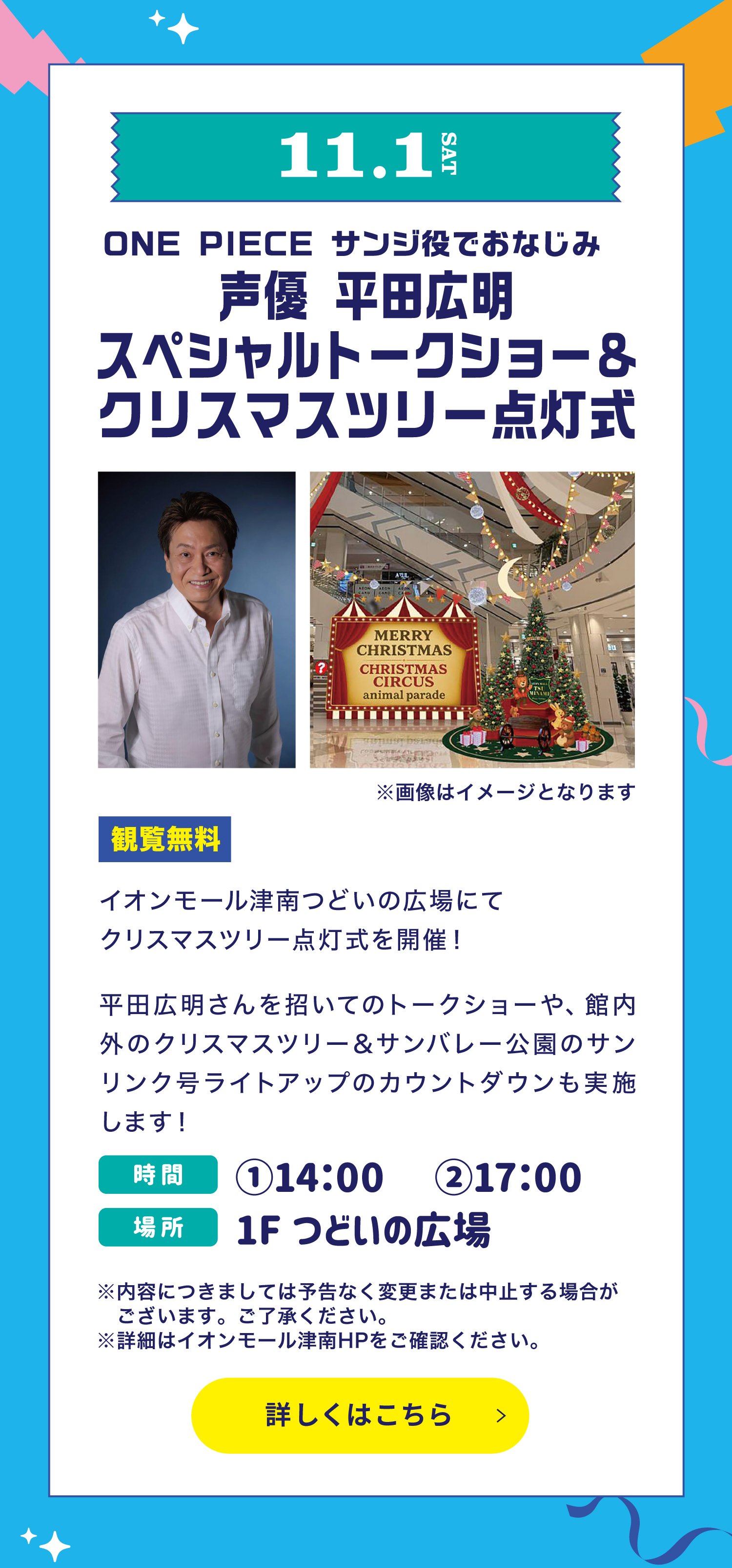 SNS イオンモールアプリダウンロード 津南インスタ ※イベントは予告なく中止または変更となる場合がございます。予めご了承ください。※各イベントの詳細はイオンモール津南のホームページをご覧ください。※写真はイメージです。※広告掲載の価格は本体価格と税込価格を併記しています。※当店平常価格とは、表記の各店舗によって「本体価格」または「税込価格」と異なります。※掲載の内容につきましては、表記の各店舗に直接お問い合わせください。品切れの節はご容赦ください。※テイクアウトと店内飲食によって税率が変わる場合がございます。※詳しくは、各店舗にてご確認ください。
